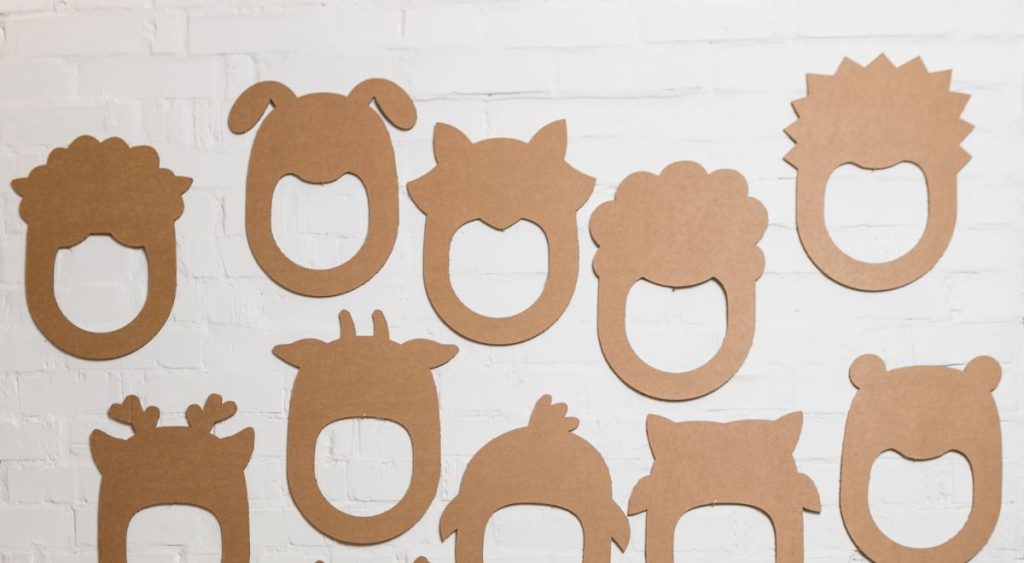 - Corta las cajas de cartón en forma de máscaras de diferentes animales, como leones, elefantes o jirafas.